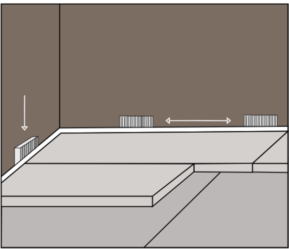 2. วางลิ่มหนา 12-15 มม. ที่ริมผนัง เพื่อเป็นช่องว่างให้ไม้พื้นลามิเนตได้ขยายหรือหดตัวตามธรรมชาติ