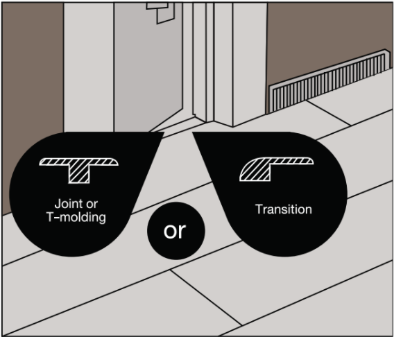 ตัวจบระดับเดียวกัน (Joint or T-Moulding) ใช้สำหรับเชื่อมรอยต่อระหว่างพื้นไม้ลามิเนตกับ ผิวพื้นไม้ที่แตกต่างกัน หรือพื้นผิวอื่น เช่น พรมแต่มีระดับความสูงต่ำที่เท่ากัน
